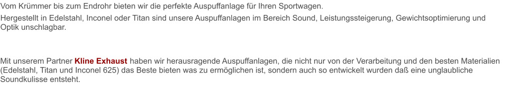 +++ Auspuffanlagen auch Sonderanfertigungen auf Wunsch in Edelstahl, Titan oder Inconel. +++