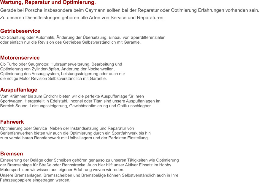 +++ Porsche 911, Boxster, Caymann, Cayenne oder Panamera wir sind Ihr Partner für Service, Reparatur oder Optimierung. +++